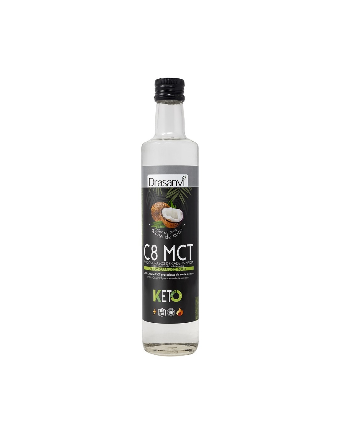 Aceite MCT C8 Coco, KETO, 500ml - Drasanvi.