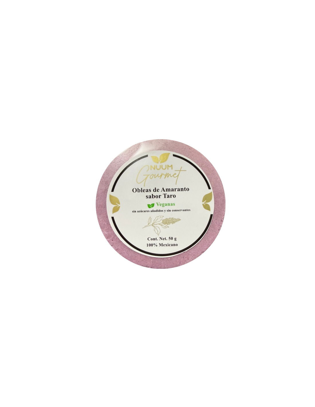 Obleas de amaranto, sabor Taro (Yuca), 50 gramos - Nuum Gourmet.