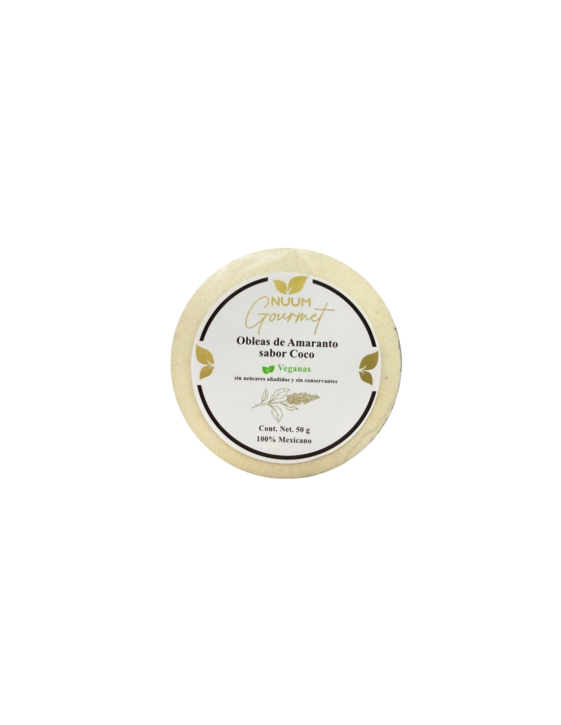 Obleas de amaranto, sabor Coco, 50 gramos - Nuum Gourmet.