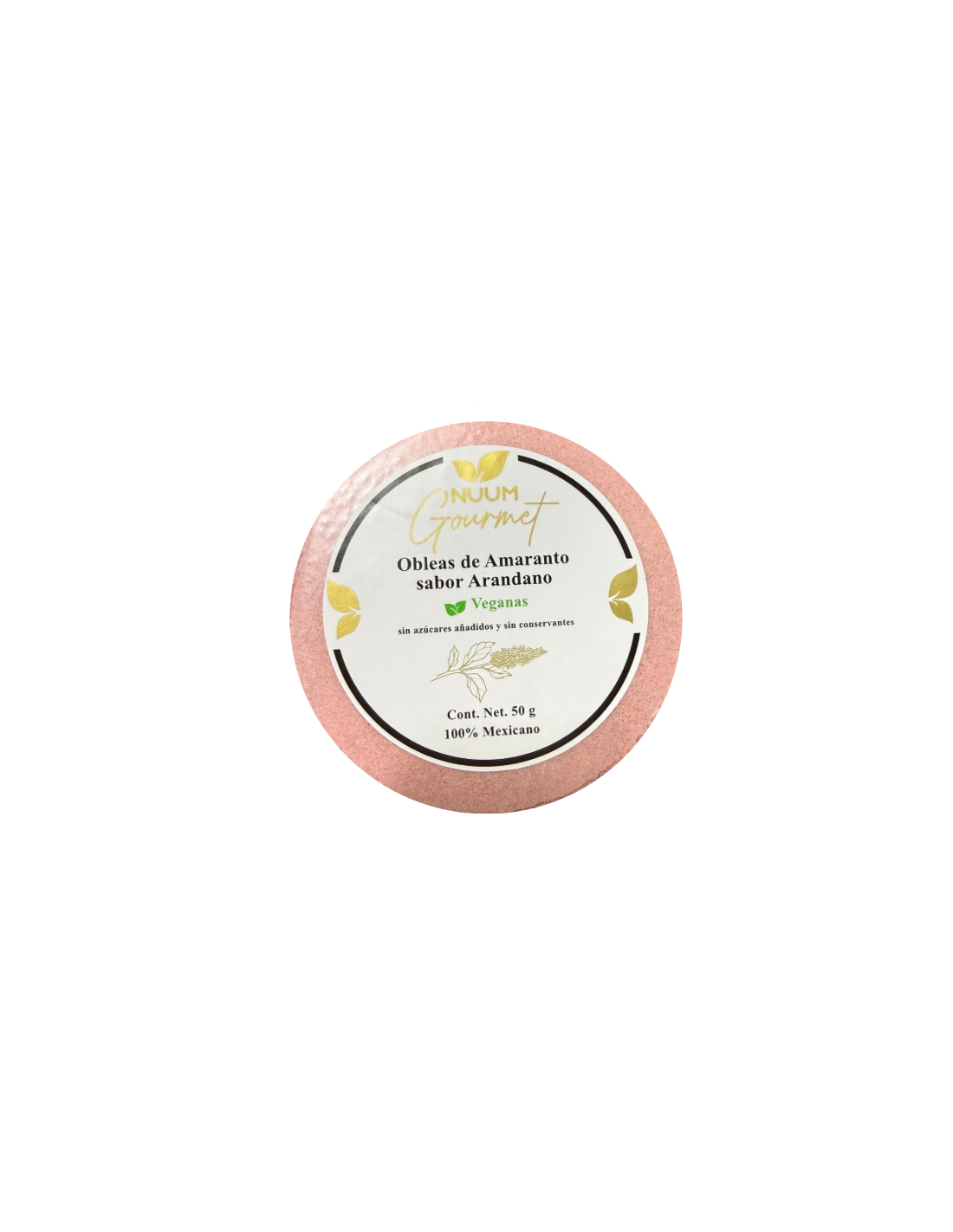 Obleas de amaranto, sabor Arándano, 50 gramos - Nuum Gourmet.