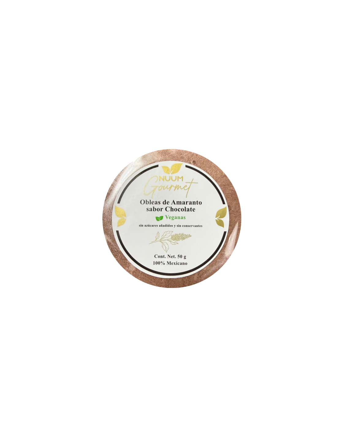 Obleas de amaranto, sabor Chocolate, 50 gramos - Nuum Gourmet.