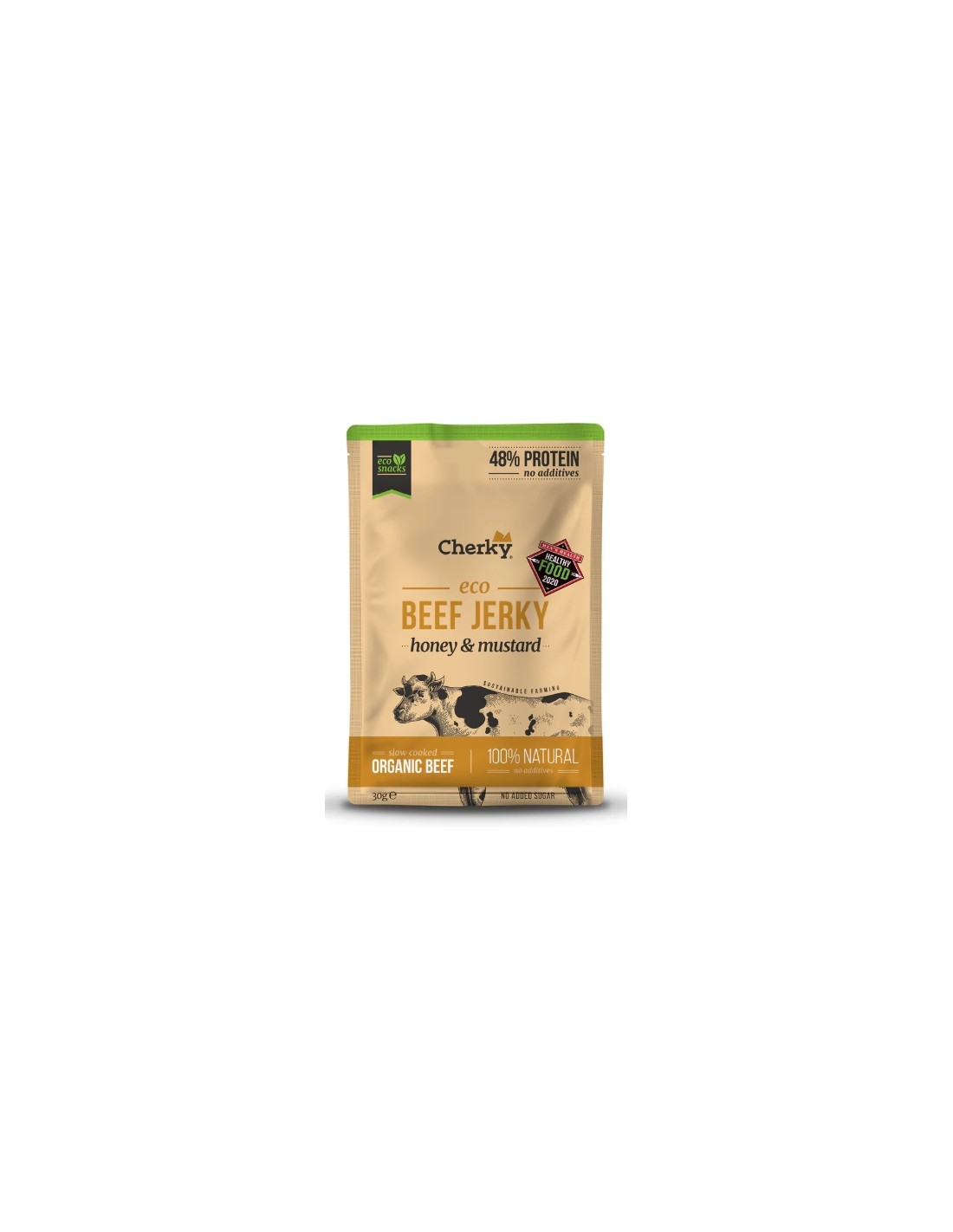 Beef Jerky, Snack de Láminas de Ternera cocinadas a baja temperatura, sabor Miel & Mostaza, 30 gramos - Cherky