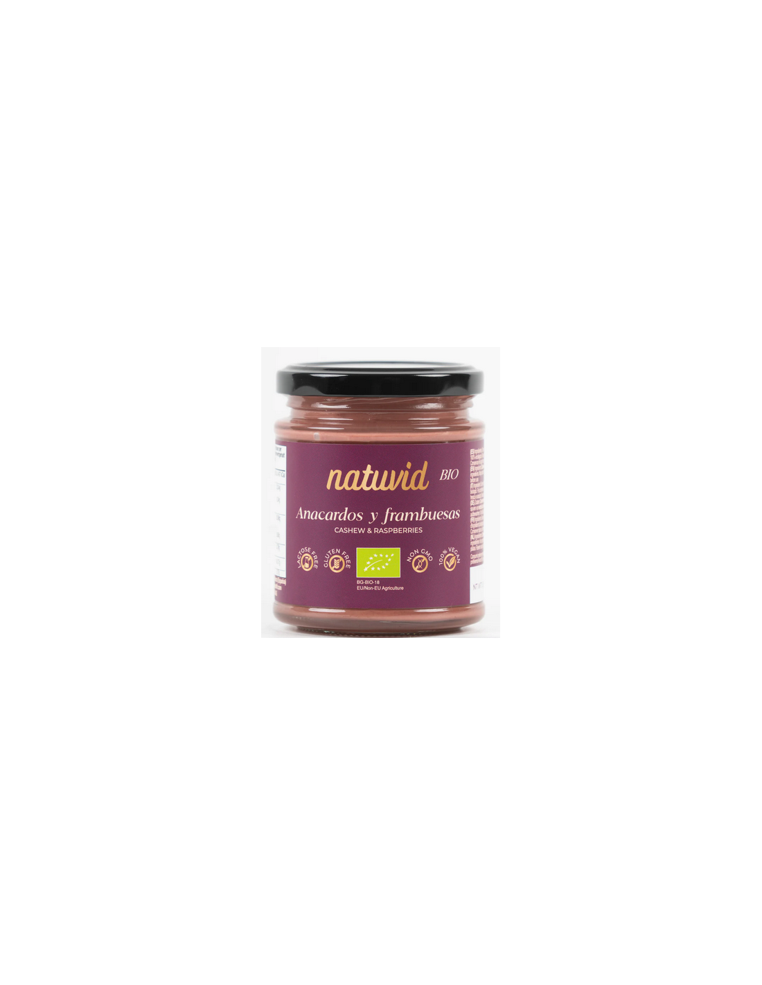 Crema de Anacardos y Frambuesas, BIO, vegano, sin gluten, sin lactosa, 200 gramos - Natuvid