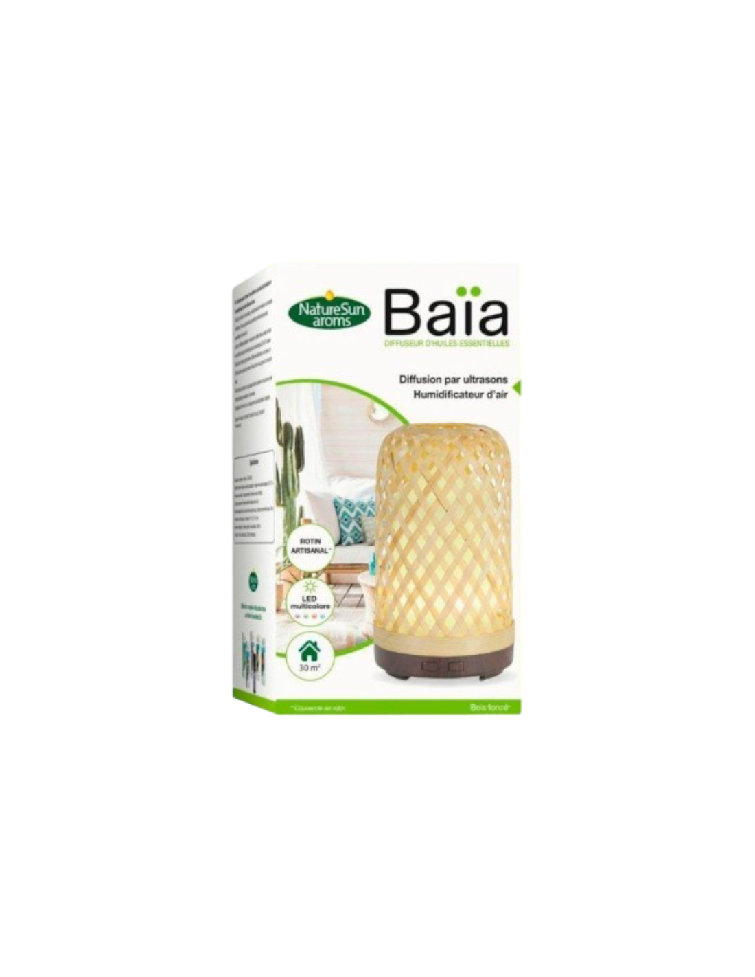 El difusor BAÏA ofrece difusión ultrasónica de aceites esenciales aptos para difusión.