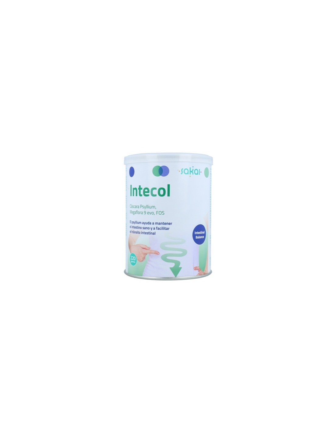 Intecol Complejo Probiotico de Sakai complemento alimenticio a base de Cáscara de Psyllium, Fructooligasacáridos (FOS) y probióticos.