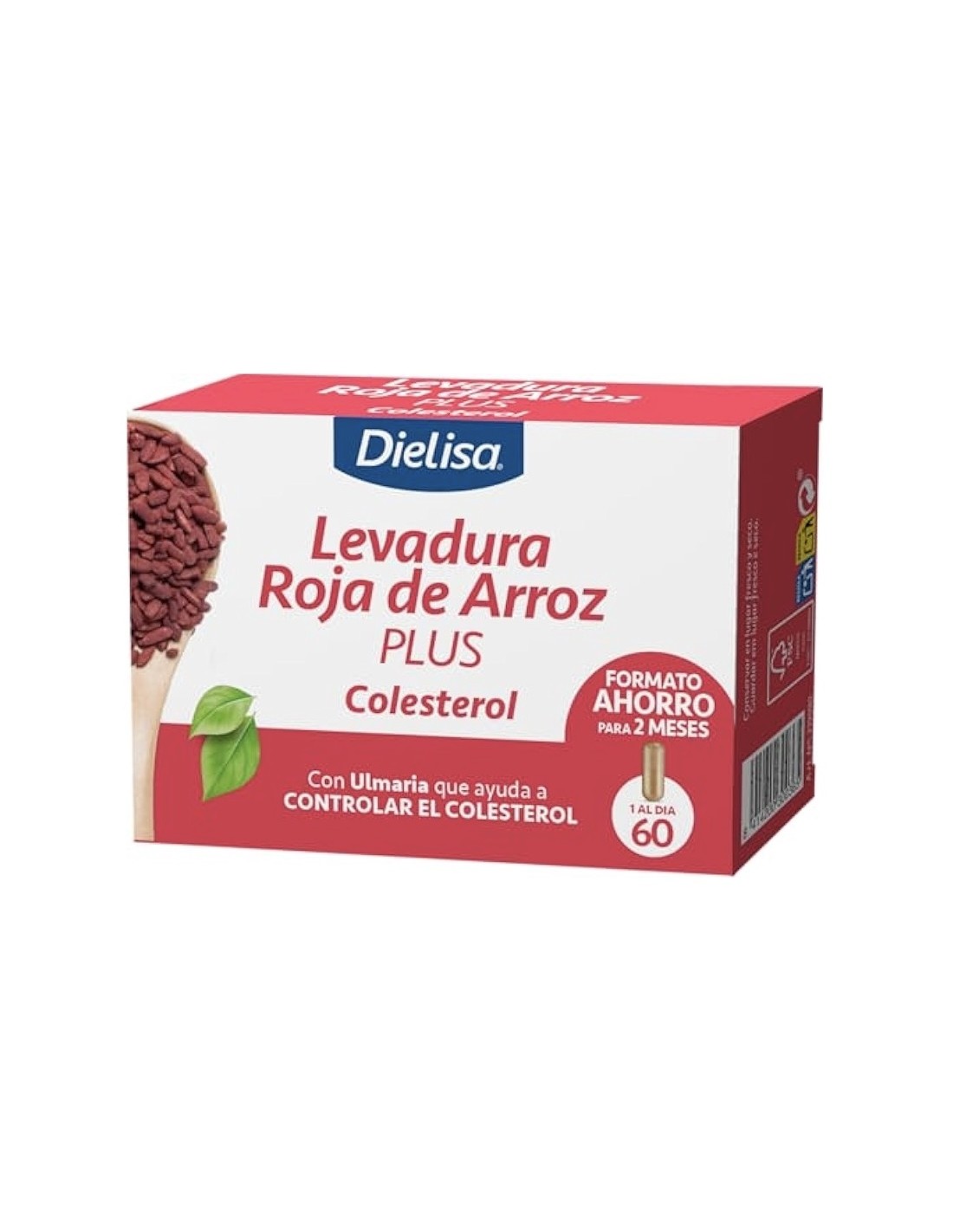 Levadura Roja de arroz Plus Dietisa, 60 cápsulas, es un complemento natural que contiene monacolina K del arroz de levadura roja que contribuye a mantener niveles normales de colesterol sanguíneo, con Q10.