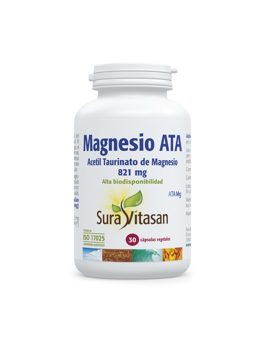 Magnesio ATA, Acetil Taurinato de Magnesio, 821 mg, 30 cápsulas - SuraVitasan.
