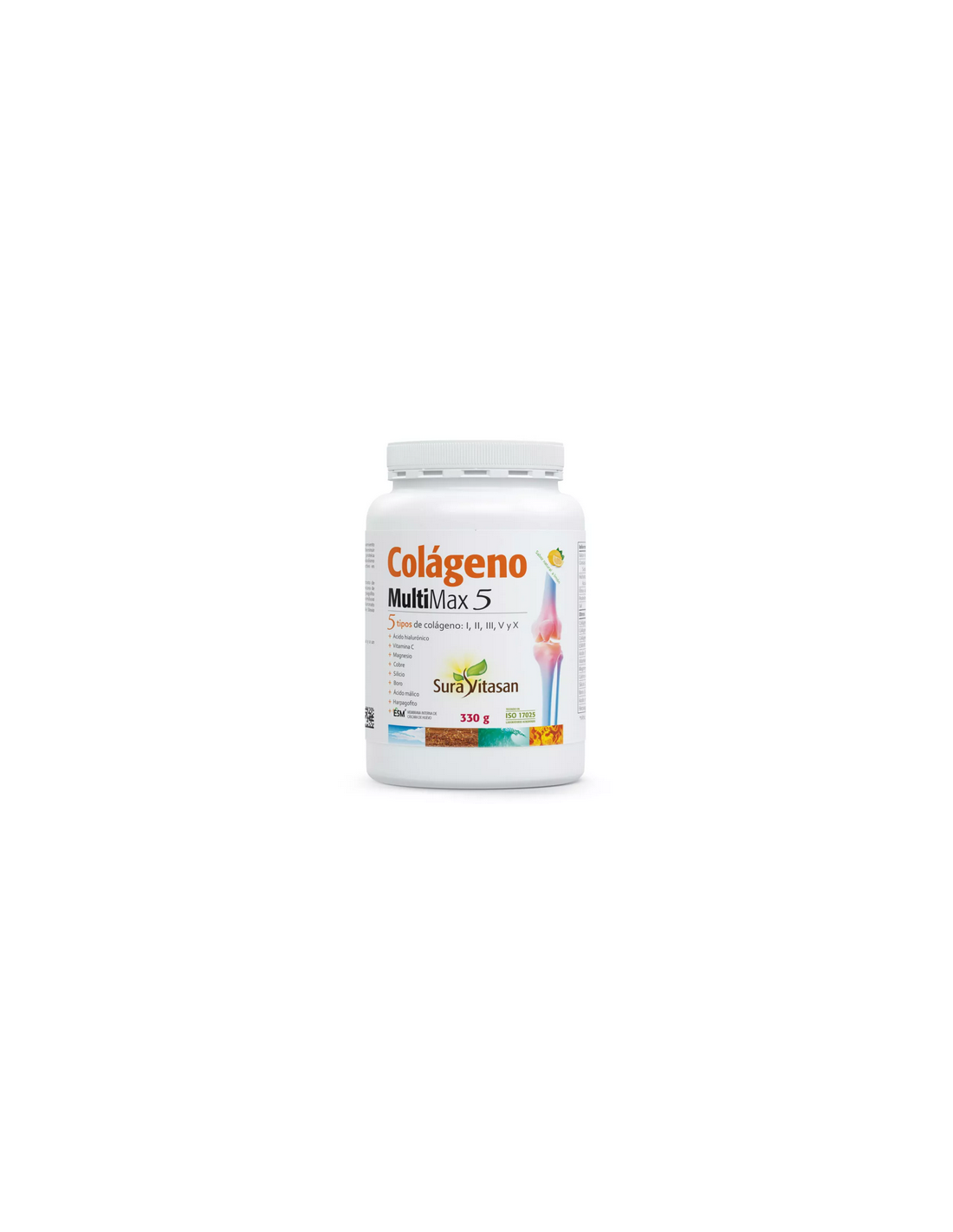 *Colágeno MultiMax 5 de SuraVitasan contiene 5 tipos de péptidos de colágeno bioactivos (tipos I, II, III, V y X) presentes principalmente en huesos, tendones, cartílagos y piel.