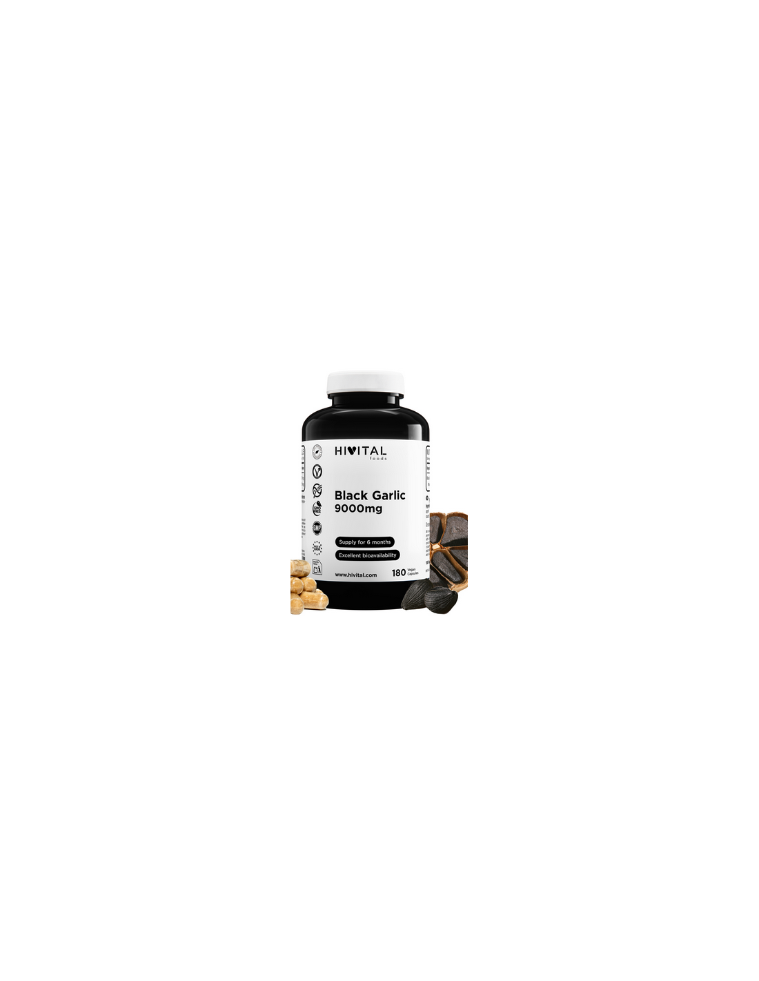 Ajo Negro, 9000 mg, 180 cápsulas veganas - Hivital