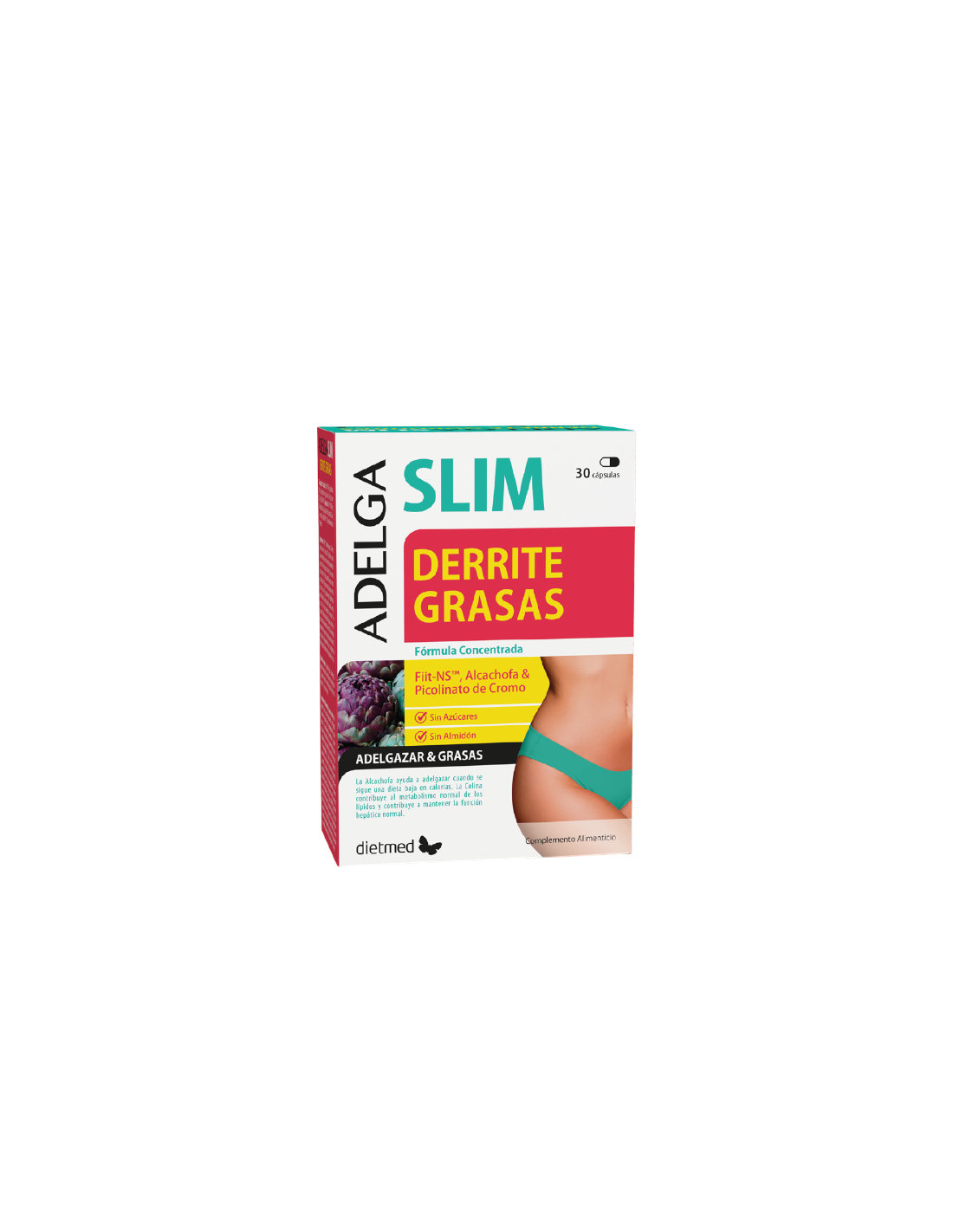 Adelgaslim Derrite Grasas de Dietmed, es un complemento alimenticio formulado a base de Fiit-NS™, cromo, colina, frángula y alcachofa que ayuda a perder peso si se combina con una dieta hipocalórica.