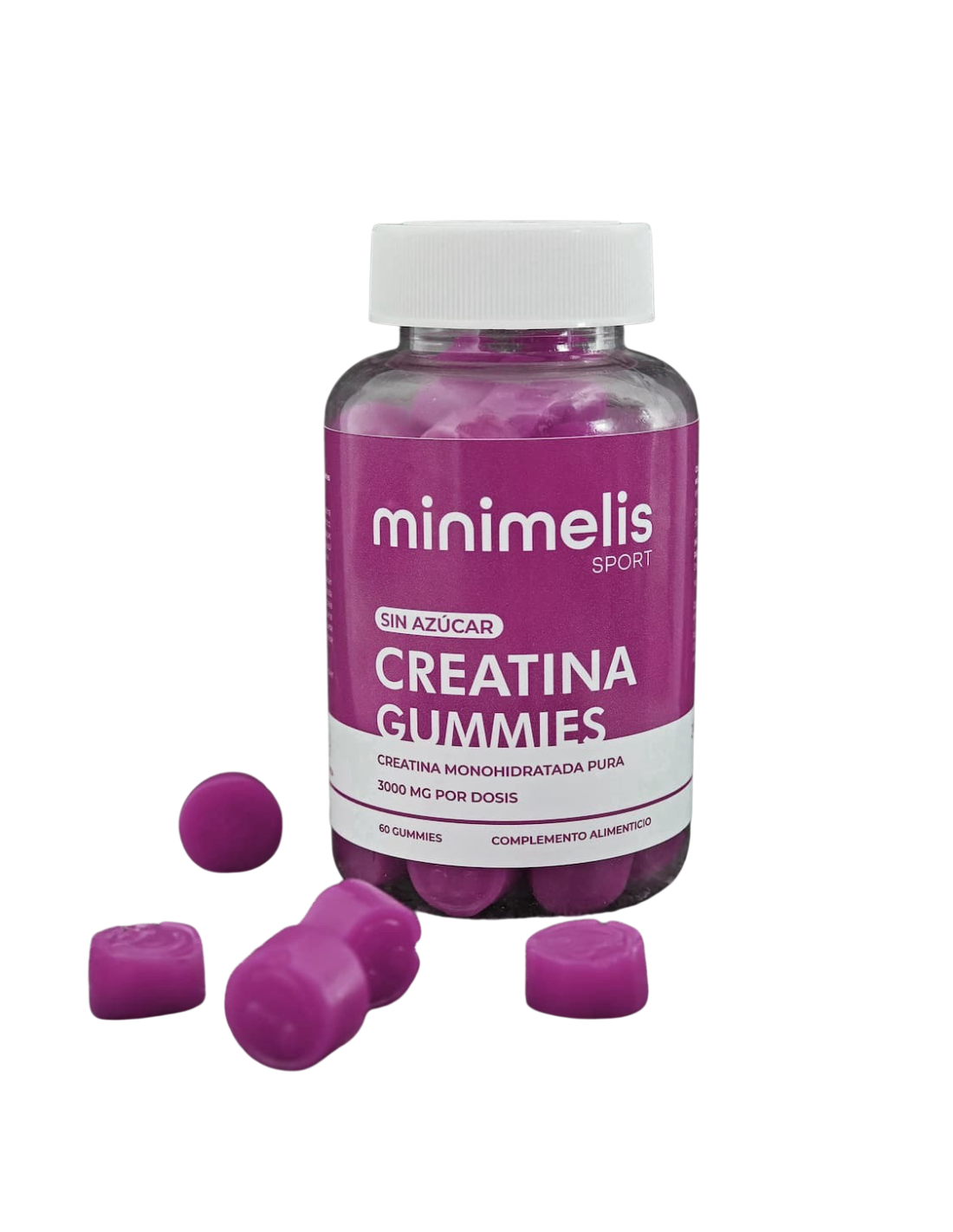 Creatina Monohidratada,60 Gummies, Frutos Rojos,sin azúcar -Minimelis Sport