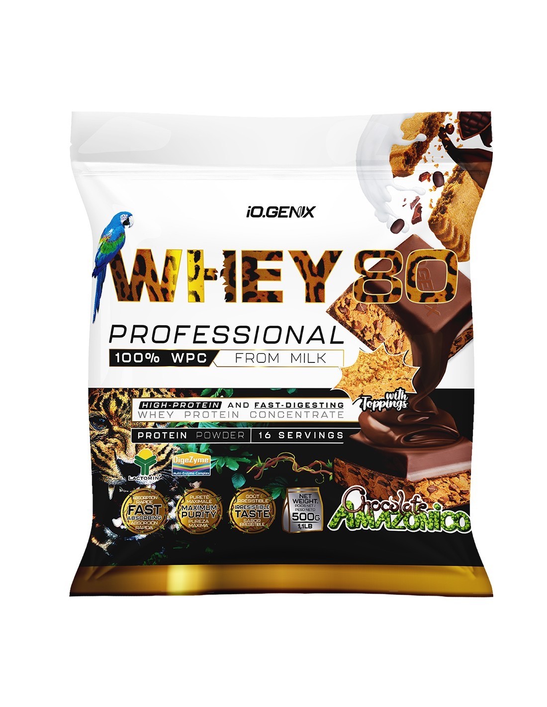 Proteína, Whey 80, sabor Chocolate Amazónico, 500 gramos - Iogenix.