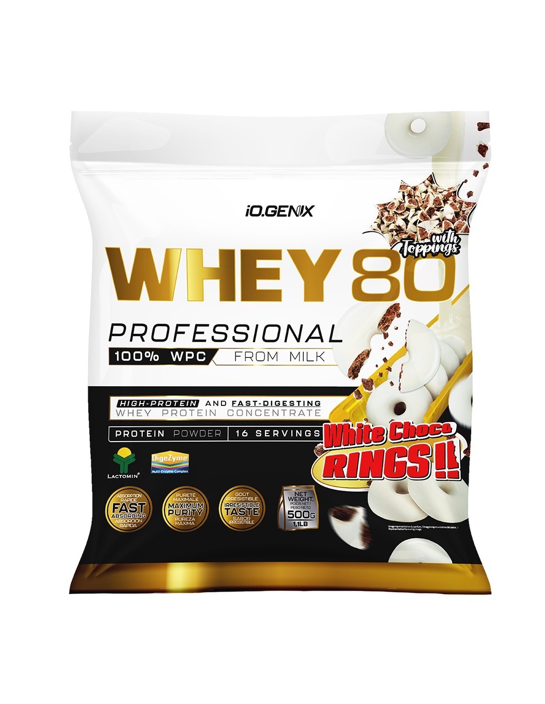 Proteína, Whey 80, sabor Filipinos Choco Blanco, 500 gramos - Iogenix.