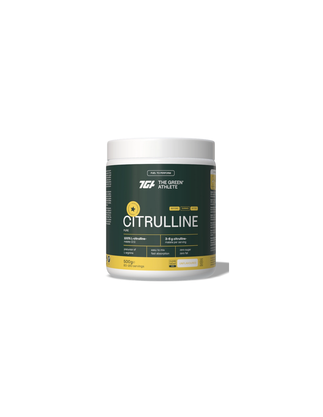 La citrulina de Green Athlete combina L-citrulina con ácido málico (malato), lo que optimiza su absorción y eficacia.