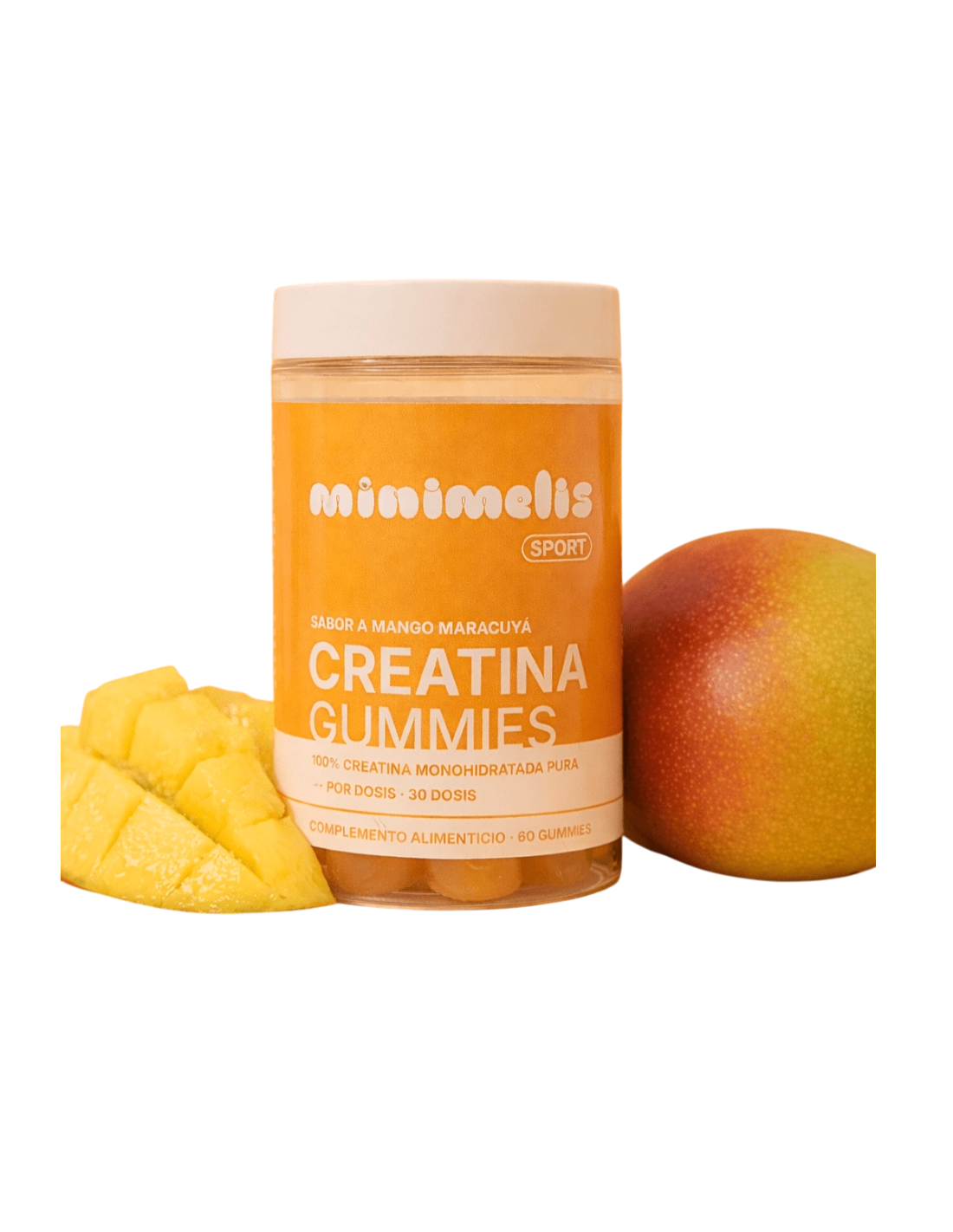 Creatina Monohidratada, sabor Mango, Maracuyá, 60 gominolas - Minimelis.