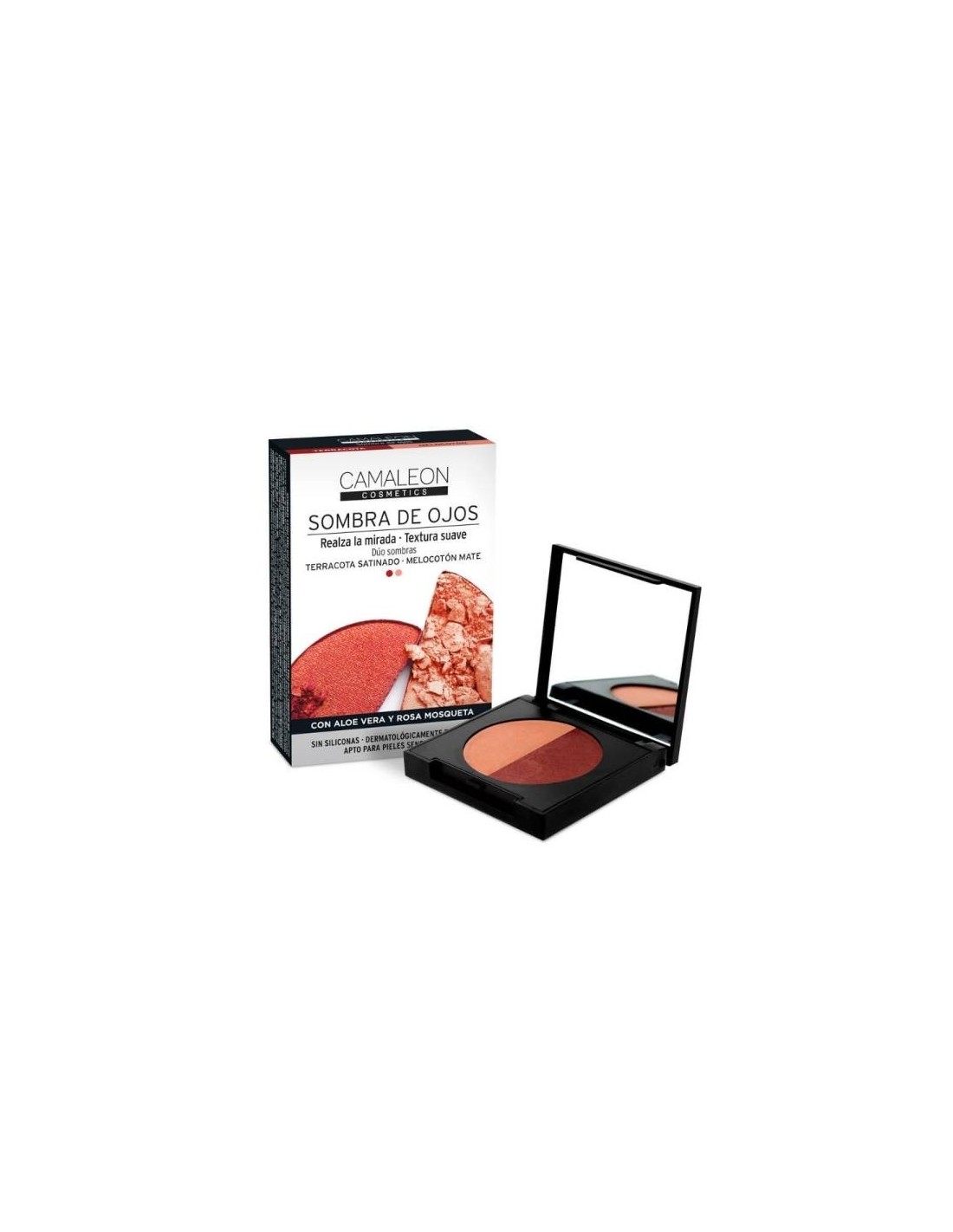 Paleta de sombras, terracota y melocotón - Camaleon Cosmetics.