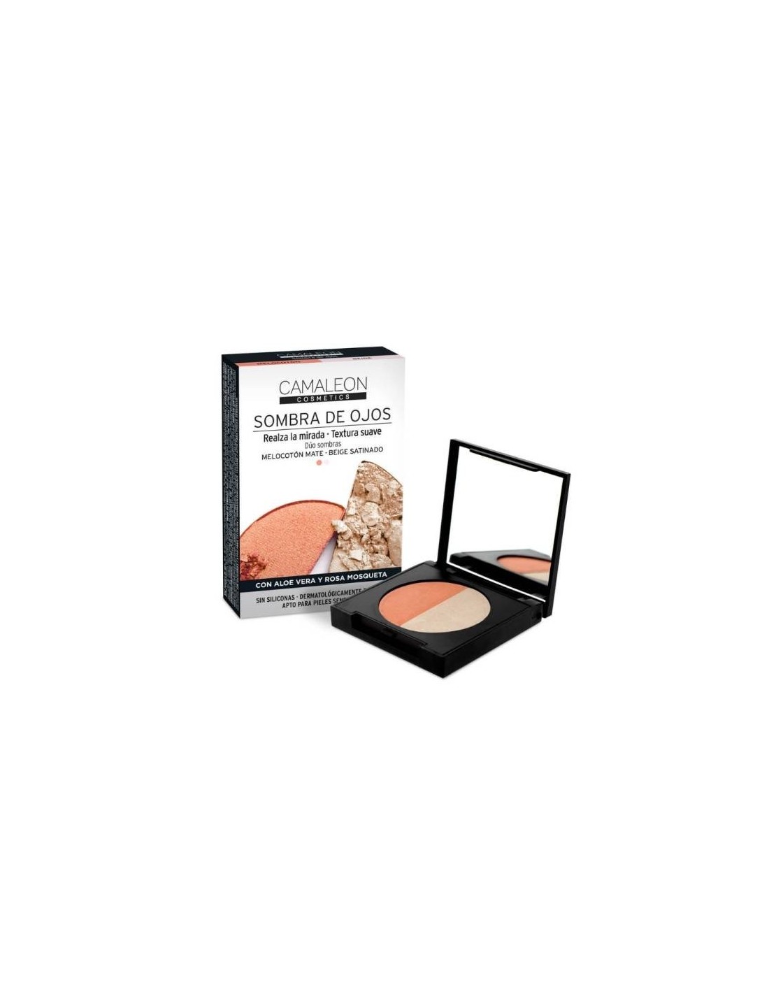 Paleta de sombras, melocotón y beige - Camaleon Cosmetics.