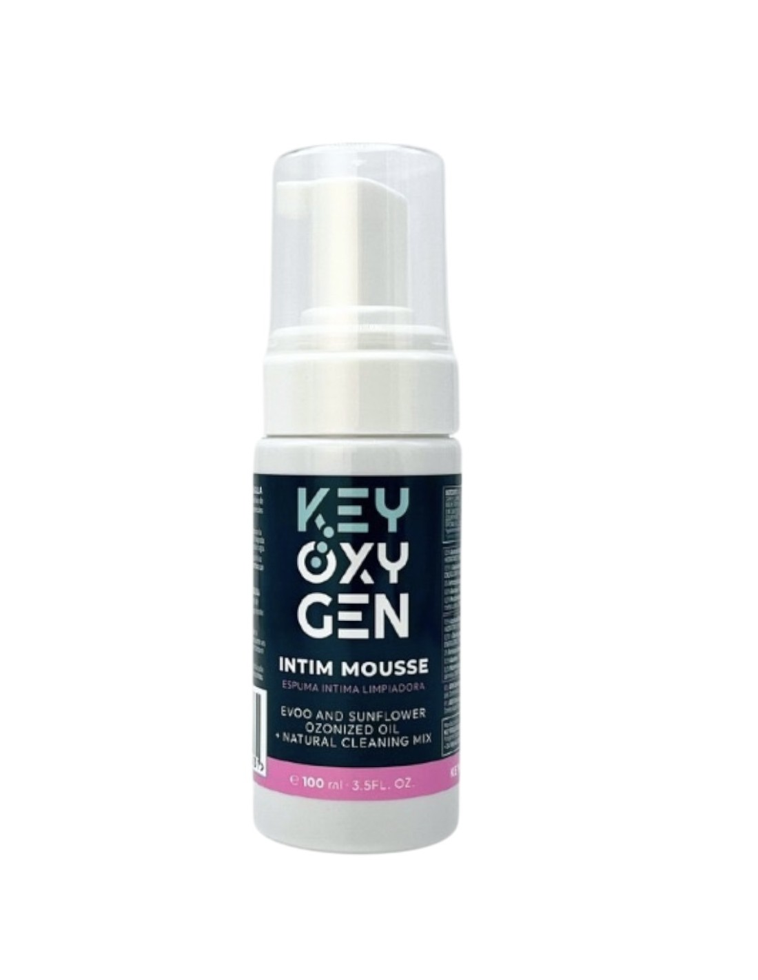 KeyOxygen Intim Mousse, espuma de higiene íntima con aceite vegetal de oliva virgen extra ecológico y de girasol ecológico ozonizados y mezcla de componentes de los aceites esenciales con propiedades higienizantes.