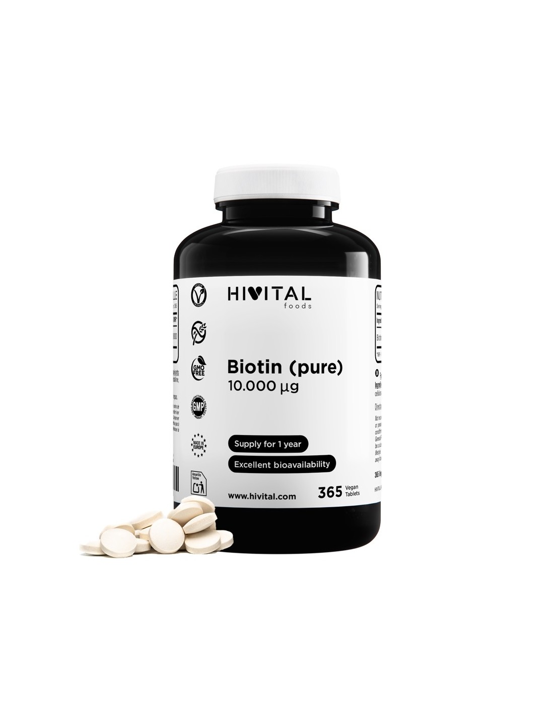 Biotina Pura, 10.000ug, 365 comprimidos - Hivital.