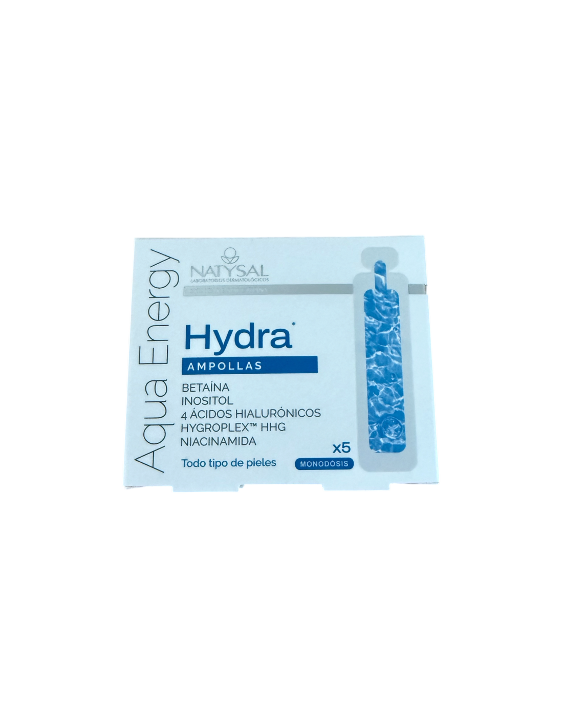 Ampollas, Hydra (Betaína, Inositol, 4 ácidos Hilaurónicos, Hygroplex y Niacinamida), 5 monodosis, 5 ml, Natysal